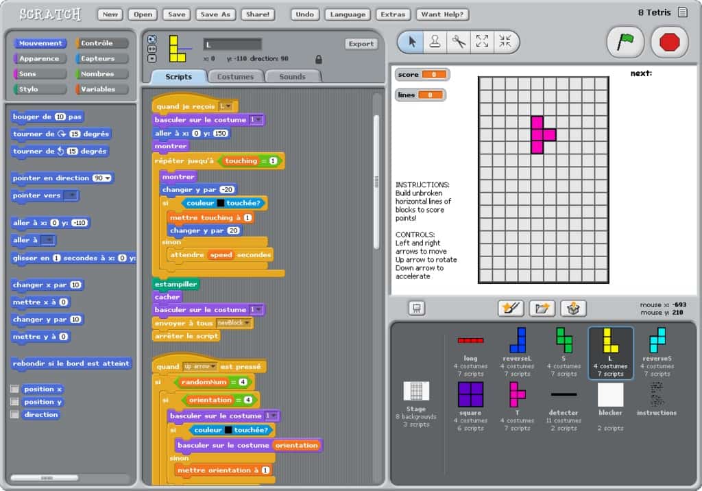Les enfants, entre 7 et 12 ans, découvrent la programmation informatique au travers du logiciel ludique Scratch dans le but de créer un jeu vidéo, une histoire ou d’autres types de créations numériques. Ce logiciel est issu d’un projet du groupe Lifelong Kindergarten au MIT (Massachusset Institute of Technology) Media Lab.