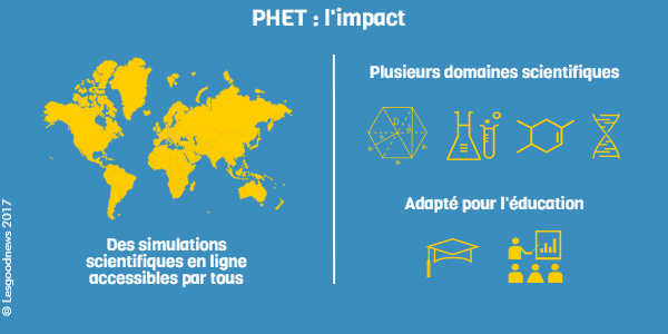 L’initiative des équipes de l’université de Boulder dans le Colorado permet au plus grand nombre d’accéder à plus de 130 simulations issues de recherches scientifiques. Créé en 2002 par Carl Edwin Wieman prix Nobel de physique en 2001, le projet est aujourd’hui dirigé par Katherine Perkins. Pour l’aider dans sa noble tâche, des doctorants, des étudiants, des professeurs se relaient pour perpétuer l’œuvre de Wieman. Toutes les simulations sont accessibles gratuitement et sont destinées, en premier lieu, aux réseaux éducatifs. Mais chaque parent peut à tout moment utiliser ces simulations dans le cadre de l’aide aux devoirs ou tout simplement pour leur culture générale.