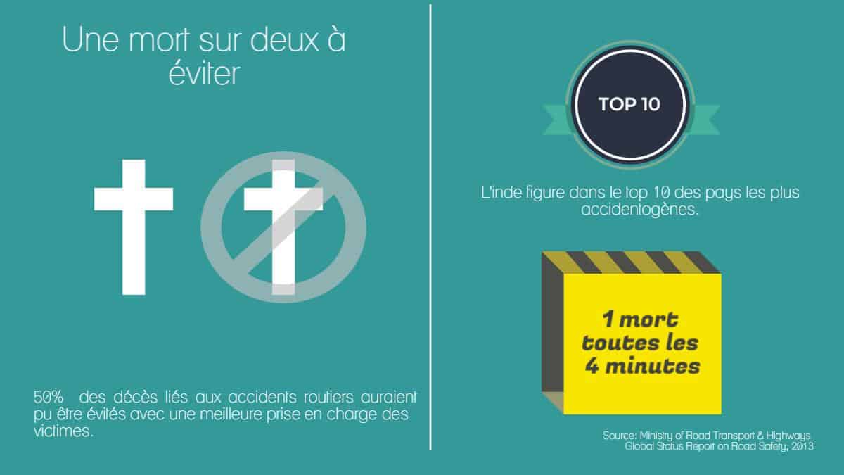 La première cause de mortalité routière en Inde n’est pas l’état des routes ou la vétusté des véhicules. C’est le comportement routier et la lenteur de réactivité des secours. En 10 ans, c’est plus d’un million de vies qui ont été écourtées dans ce pays. SaveLife Foundation a été fondée en 2008 par Piyush Tewari. Suite à la mort accidentelle de son cousin de 17 ans, Piyush Tewari a étudié les causes de mortalité routière. Il a constaté que près de 50% des décès pouvaient être évités par une meilleure prise en charge des accidentés de la route par les premiers secours. En 2013, les accidents routiers ont été déclarés « urgence nationale » par la court suprême indienne. SaveLife Foundation mène des actions préventives et apporte des réponses post-accident pour faire sortir l’Inde du Top 10 des pays les plus accidentogènes.