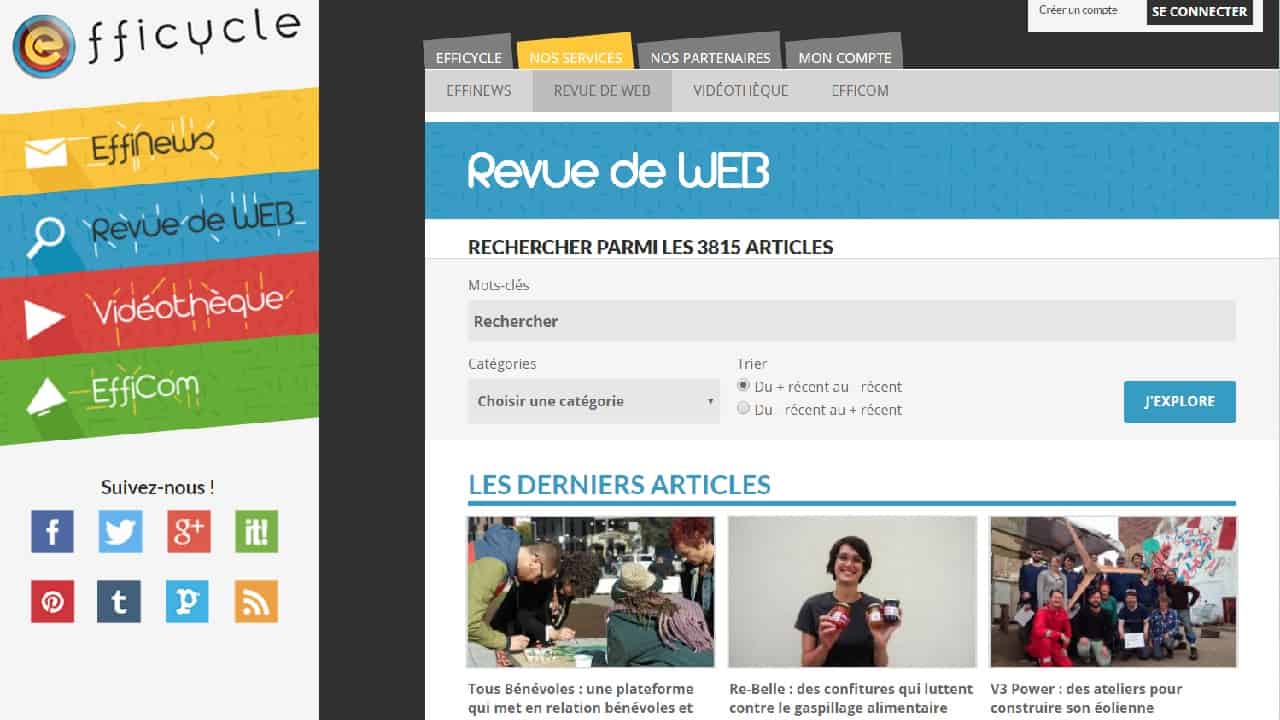 En France, la plateforme web Efficycle scrute l’information sur le développement durable afin de restituer une veille au grand public et aux professionnels.