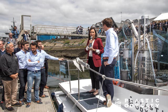 Soutenu par bon nombre de personnes dont Claudie Haigneré, astronaute française, la navigatrice Catherine Chabaud et Sabine Roux de Bézieux, présidente de la fondation de la mer, Plastic Odyssey se présente comme une aventure mêlant innovation et humanisme. Le comité de soutien compte une dizaine de personnes telles que Roland Jourdain, navigateur français et Fanny Agostini, présentatrice de l’émission Thalassa sur France3. L’expédition est sous le haut patronage du ministère de la transition écologique et solidaire. Le prototype ULYSSE a d’ailleurs été inaugurée par la secrétaire d’État auprès du ministre de la Transition écologique et solidaire, Brune Poirson. Le comité scientifique compte huit personnes dont des spécialistes en chimie comme German Jimenez, docteur en chimie et expert en pyrolyse du plastique, et Miranda Wang co-fondatrice de Biocollection. Côté soutien financier, Plastic Odyssey peut compter sur des acteurs de poids comme le Crédit Agricole, la Fondation Véolia et le groupe Clarins. Côté technique, la jeune équipe sera épaulée entre autres par le cabinet d’architecture navale VPLP et l’École Nationale Supérieur des Arts et Métiers (ENSAM). Bien d’autres personnalités, acteurs publiques et entreprises, dont la liste est à retrouver sur le site web, soutiennent ce projet. On peut noter la présence de Greentropism, déjà citée dans lesgoodnews, qui apportera son expertise dans le domaine de la spectroscopie proche infrarouge. Plastic Odyssey a été labellisé par 1% pour la planète.