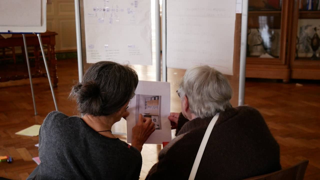 Nous accompagnons plusieurs groupes d’habitants, puisque plusieurs habitats sont en préfiguration. Lors d’un événement où tous les participants se sont réunis, surprise pour Jacqueline et Andrée, de se retrouver après avoir travaillé dans l’action sociale il y a 40 ans de cela !
